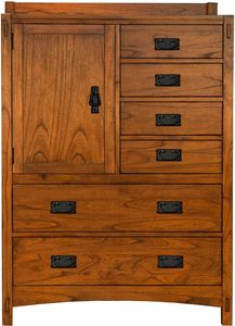 The simple, sturdy vertical lines of our Mission Hill bedroom speak to the motifs of the Arts & Crafts design movement, ornamented mainly by the grain of the wood, the joinery and the hardware. Although the mortise and tenon joinery and closely spaced long wooden slats are reminiscent of the related mission furniture style and offer a classically traditional aesthetic, the simple silhouette caters to a living style and philosophy that can make any home more satisfying, comfortable and beautiful. Features classic craftsman hardware that emulates a hand forged hammer tone texture in an oil-rubbed bronze finish.
