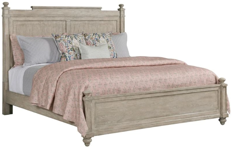 Quality workmanship is showcased in the Sova Panel bed. Headboard features ornamental finials with inlaid panels that is carried out on the footboard as well. It is constructed of White Oak veneers in a taupe like finish. The complete bed package consists of the 309-306B king headboard and the 309-307B king footboard and side rails.Read More