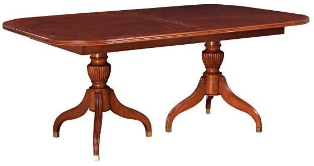 Pedestal table that is perfect for formal settings and keeping up with the classic styles of the 18th Century. Booked matched veneer tops with pedestal bases take this table from 76 " to 112" with 2-18" leaves.Read More