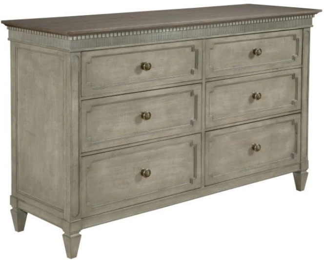 Inspired by Gustavian, European provincial and country cottages, the collection features a unique textured Versailles finish with contrasting elm tops. A variety of moldings, metal fretwork and antiqued mirror add an antique feel. The hardware complements the aesthetic with a vintage gold finish. Perfect for clean, classic home styles, Savona puts a confident, elegant twist on antique Old World furniture trends, offering a vintage, antique feel without sacrificing reliability and quality.
