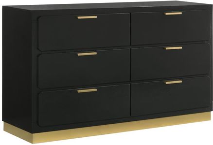 Modern luxury with a minimalist look offers a perfect fit for updated bedrooms as the six-drawer enhances a sleek master suite or guest bedroom. Wood and wood products construct a dresser with clean lines and a stylish Mid-Century Modern vibe.Read More