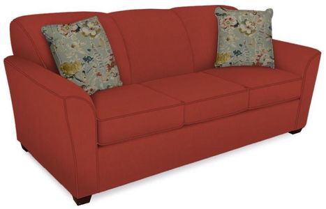 Our Smyrna collection features a contemporary sofa, loveseat, chair, and ottoman, as well as queen, full, and twin sleepers. The sofa boasts a three over three configuration with a channel stitched back over bordered seat cushions and a clean front rail. The modified half-moon arms are slightly flared. The sleeper is available with a standard, Visco, or air mattress.