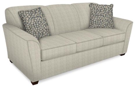 Our Smyrna collection features a contemporary sofa, loveseat, chair, and ottoman, as well as queen, full, and twin sleepers. The sofa boasts a three over three configuration with a channel stitched back over bordered seat cushions and a clean front rail. The modified half-moon arms are slightly flared. The sleeper is available with a standard, Visco, or air mattress.