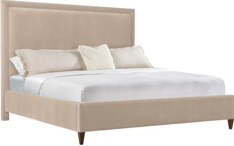 Bring both comfort and style to your bedroom with the Archives California King bed. Upholstered in plush velvet fabric, this bed features a classic walnut finish on the wood feet and is designed with welt trim for an elegant touch.Read More