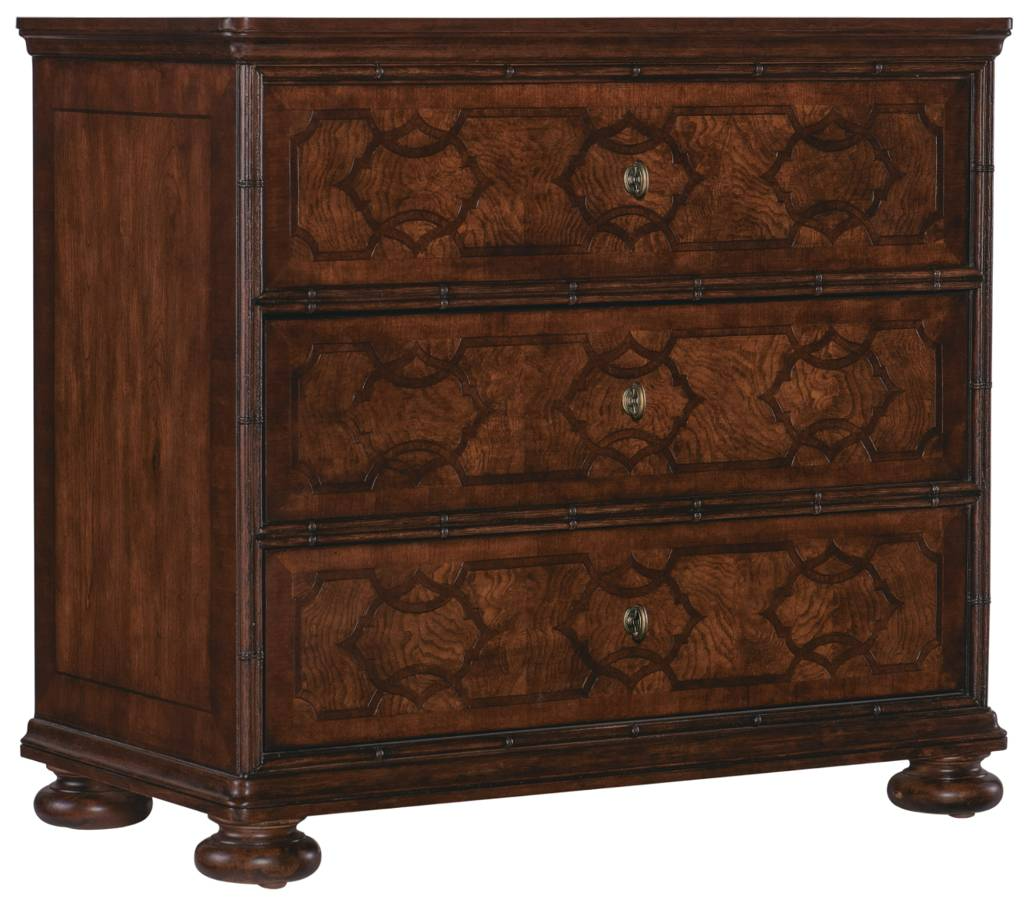 Celebrate the traditional soul and sophisticated beauty of federal and georgian design with this majestic Charleston three-drawer nightstand adorned by inlay accents on the drawer fronts and updated for today with bun feet and tech-friendly features. Each of the 3 self-closing drawers has a cherry color interior.Read More