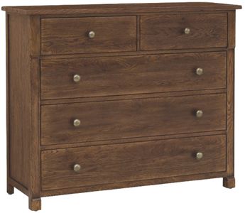 The casual worn saddle finish adds a rich, burnished character to this five spacious drawer chest. Featuring smooth self-closing drawers and a cedar-lined bottom drawer, it blends functionality with timeless elegance.Read More