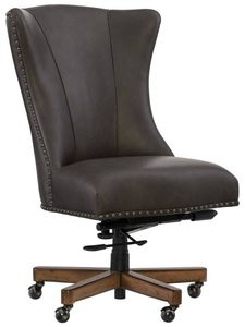 Chic in a clean and simple silhouette, the armless Lynn Executive Chair with casters flexes while you work to give you mobility to swivel, tilt, and roll. Covered in the Caruso Naples finished top-grain leather, the Lynn features vertical channels on the back, shaped wings, and nailhead trim down the sides and seat.Read More