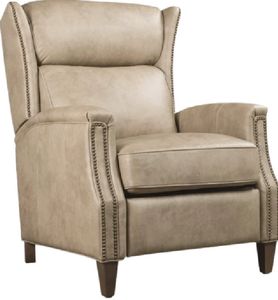 The Lansing recliner in Enna caribou leather brings stately flair to traditional settings. Featuring a flared bustle back, tapered legs, and refined brass nailhead detailing, this power recliner is as decorative as it is functional. USB charging and power headrest add hidden modern comfort.Read More