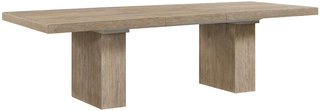 This sturdy dining group features clean, modern design elements blended with the casual nature of lightly wire brushed pine solids and veneer. Shown in a beautiful weathered sand finish. The cast bar pull hardware on the Sideboard has an antique pewter finish.Read More