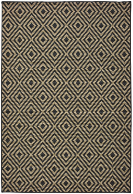 Marina is an elegant new introduction for indoor or outdoor use and features a 100% polypropylene looped yarn made in Egypt. It features a classic neutral palette using high contrast colors like black, ivory, deep navy, sand and cool gray. The collection includes casual but sophisticated patterns like updated geometrics and simplified traditionals that all feel fresh but timeless.