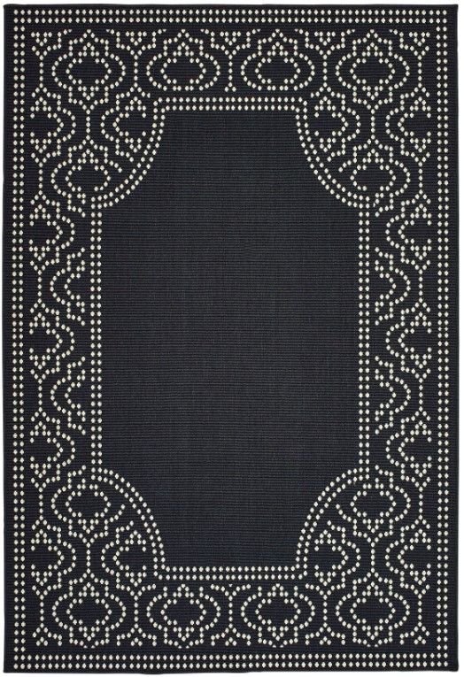 Marina is an elegant new introduction for indoor or outdoor use and features a 100% polypropylene looped yarn made in Egypt. It features a classic neutral palette using high contrast colors like black, ivory, deep navy, sand and cool gray. The collection includes casual but sophisticated patterns like updated geometrics and simplified traditionals that all feel fresh but timeless.