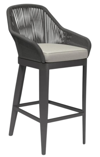 The Milano Barstool embodies clean lines and thoughtful angles with its angled frame and striated rope design. Its rust free aluminum frame is expertly hand wrapped with premium all-weather olefin rope in a charcoal-grey, and is finished with a slate tapered leg.Read More